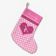 Meia monogrammed do Natal da ginástica Checkered com uma luz - o rosa e o branco projetam. Um coração grande do rosa quente tem uma silhueta do gymnast para dentro! Adicione seu próprio texto antes que você peça! Adicionalmente, use "personalizam-no" botão para alcançar mais opções, incluindo uma pia batismal diferente!