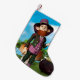 Renderização digital 3D de um encantador duende, pote de ouro e shamrock num céu azul e um fundo verde de prados
