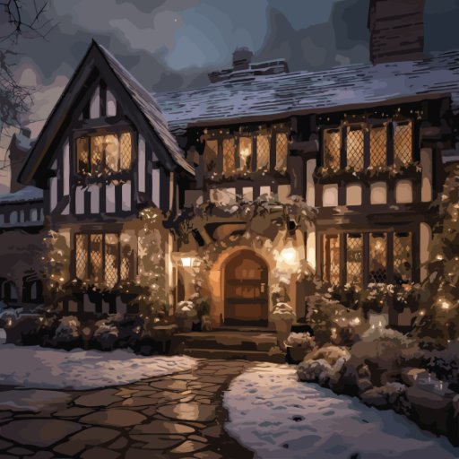Experimente o encantador encanto de uma casa rustica Tudor adornada com luzes cintilantes, verdes fragrantes e o gentil abraço de neve recém-caída. A nossa coleção "Magia de Natal Rústica" captura a beleza eterno de um confortável retiro de madeira e pedra, evocando o calor e a nostalgia da Véspera de Natal numa terra maravilhosa de inverno.