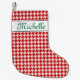 Meia personalizada do Natal com monograma conhecido feito sob encomenda. Alinhador longitudinal vermelho do houndstooth ou cor customixable. Decorações monogrammed bonitos do xmas para os feriados. Mude a quantidade para obter o preço o mais barato por a peúga. Letra inicial da tipografia elegante do roteiro. Apropriado para homens, mulheres e miúdos. meias x-mas vermelhas e verdes.