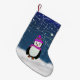Ilustração gráfica de pinguins bonitos em um frio, noite do inverno que compartilha de um copo do cacau. Você pode personalizar esta meia com sua mensagem pessoal. Ilumine acima dos feriados com esta meia adorável.