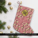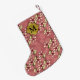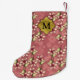 Meia De Natal Pequena Monograma Dourado de Pinsetos vermelhos e flocos d