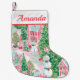 Bonita, feminina, coquete pré-desidratada de árvore de Natal em rosa, verde e turquesa. Detalhes de homens de neve. Adicione facilmente o nome personalizado.