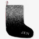 Meia De Natal Pequena Nome do Monograma do Sparkle Glitter Negra
