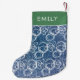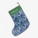 Moderno Blue Denim Jean Abstrato White Pattern Name Small Christmas Stocking . Jeans modernos de denim azul com um padrão abstrato branco e nome em verde - personalize com seu nome.