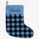 Meia De Natal Pequena Nome do Padrão de Xadrez Azul Moderno