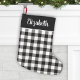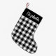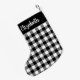 Meia De Natal Pequena Nome Personalizado da Xadrez Búfalo Preta e Branca