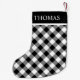 Meia De Natal Pequena Nome Personalizado Gingham Branco Preto