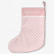 Meia De Natal Pequena Nome Personalizado Gingham Branco Rosa