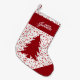 Estocagem elegante com árvore de Natal vermelha e nome que pode ser personalizado em uma ilustração de fundo da granizo/tempestade de neve. Adequado para crianças. O espaço reservado para Nome pode ser personalizado para a sua escolha de estilo de fonte - script cursivo e decorativo dos formatos Zazzle. Trendy e na moda, elemento de decoração que vai com as celebrações de Natal. Corresponde a outros produtos na minha loja Feliz_Xmas_Store. Visite o link da minha loja: https://www.zazzle.com/store/merry_xmas_store/ se você estiver interessado em minha coleção.