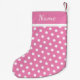 Meia De Natal Pequena Nome personalizado - Pink Natal - Pontos Brancos