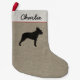 O impressão bonito do tecido assemelha-se ao linho ou à serapilheira com um espaço para adicionar seu nome ou nome do seu cão. Uma meia clássica do Natal do estilo country com uma silhueta de Boston Terrier. Encha com os brinquedos e os deleites para seu amigo de quatro patas. Decoração do feriado do amante festivo de Boston para a casa ou o escritório. Esta meia está disponível em muito mais raças do cão pelo mundo do Doodle de Jenn.