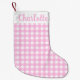 Meia De Natal Pequena Padrão de Gingham Rosa Pastel