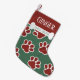 Seu cachorro vai adorar esta meia de Natal divertida personalizada só para ele ou ela. A meia apresenta o nome personalizado do seu animal de estimação com um osso de cachorro branco que sobrepõe as palavras "guloseimas do Papai Noel" com a pata do cachorro em um padrão vermelho. Fofo e festivo e muito espaço para guloseimas para cachorros... uma meia de Natal que será apreciada por anos.