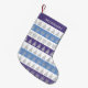 Personalize esta meia divertida Chrismukkah com um padrão de Hanukkah Menorahs prateado e árvores de Natal prateadas em faixas coloridas de branco, azul e roxo. Adicione um nome em texto prateado ao estoque para um presente personalizado. Os Menorah e os designs das árvores em prata são simples o suficiente para que esta estocagem de Natal possa funcionar para qualquer um dos feriados. De decorar o arbusto de Chanuka à espera de Papais noeis, todas as idades vão adorar este Ultra Violeta, azul de córnflor e simples Chrismukkah branco, estocando para famílias inter-confessionais.