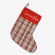 Esta design apresenta um belo e simples guião de caligrafia para na moda com uma estocagem de natal com um padrão vermelho e verde de xadrez, uma turma típica, clássica mínima minimalista e elegante, estilo elegante vintage rústico, design antigo de feriado eterno, decoração de natal no inverno, um nome personalizado personalizado personalizado, ideia de presente personalizado de Natal, uma design de Natal simplista e simplista
