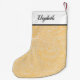 Padrão Dourado Floral Personalizado - Pequena Parada de Natal. Adicione um toque festivo ao seu manto de férias com este estilo de vintagem moderno e elegante William Morris Dourado Larkspur Floral Botanical Stocking. Personalize com um nome ou inicial no topo em caracteres pretos de script de caligrafia.