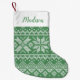 Adicione um toque festivo à sua casa e ouça esta temporada de férias com meias de férias personalizadas! As meias personalizadas apresentam um padrão de suéter verde e branco com uma banda branca no topo. Personalize as meias de Natal com seu nome ou monograma personalizado.