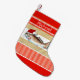 Por favor o entusiasta da pesca de esportes esta época natalícia com esta meia que caracteriza um salmonetes (cilindro vermelho) que donning um chapéu do papai noel em um vermelho do divertimento e em um design do Natal do ouro. Personalize com o nome de sua escolha.