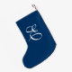Meia De Natal Pequena Parada de Natal do Monograma Azul e Branco