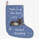 Um macaquinho bonito dormindo esperando Papais noeis. Esta maravilhosa ação de Natal para crianças apresenta a mensagem: "Acordar-me quando os Papais noeis chegam". O burro está dormindo em um fundo azul com flocos de neve. Você pode alterar o nome nesse estoque facilmente usando o texto modelo.
