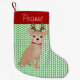 Meia De Natal Pequena Personalizado Tan Chihuahua e Bolinhas Verdes