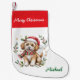 Meia De Natal Pequena Personalized Goldendoodle Dog in Santa Hat