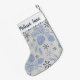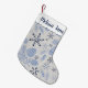 Meia De Natal Pequena Pinhas Azuis Flocos de Neve Monograma Personalizáv