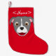Meia De Natal Pequena Pitbull cinzento enfrenta com chama branca