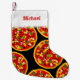 Uma meia divertida de Natal impressa com pizzas enormes. Adicione seu próprio nome para personalizar. Excelente surpresa de Natal para quem ama pizzas.