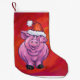 Meia De Natal Pequena Porco bonito em Santa Chapéu em Vermelho