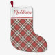 Meia De Natal Pequena Red Christmas plaid pattern personalized name