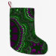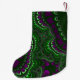 Esta meia de Natal fractal colorida tem cores brilhantes e vibrantes como roxo e verde. Esta meia colorida de Natal é um excelente adicional para o seu decoro de férias. Você pode escolher o tamanho e o tipo de tecido do estoque antes da compra.