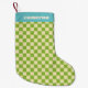 Meia De Natal Pequena Retro Green Blue Checkerboard Personalized Name