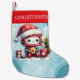 Crie uma estocagem de Natal personalizada única com uma ilustração de robô fofo projetada em azul-neve e cores vermelhas. O modelo facilita a digitação de qualquer nome.