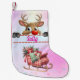 Meia De Natal Pequena Rudolph Reindeer com Papais noeis Suspiros - Rosa