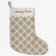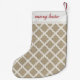 Meia De Natal Pequena Rustic Faux Burlap e White Quatrefoil