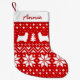 O Natal dos Terriers Silks. Padrão de suéter de Natal vermelho e branco com silhuetas de seda. Personalize este estoque de férias bonitinho com seu nome ou nome de seu cachorro. Um suéter festivo nórdico para pendurar na tua lareira. Todos querem ser incluídos nas festividades sazonais e nossos amigos peludos não são exceção. Trate seu membro da família de quatro patas com um estoque de Natal personalizado. Este legal 'Silky Terriers' padrão de estocagem de Natal é excelente tanto para cães quanto para amantes de cachorros. Visite o Doodle World de Jenn para ver as meias ainda mais bonitas e a decoração de férias do amante de animais de estimação.