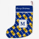 Na moda CHRISTMAS STOCKING mostrando a bandeira de BARBADOS em um padrão de tiled. No centro há um MONOGRAM PERSONALIZÁVEL, portanto você pode adicionar seu próprio inicial. No topo há uma saudação de espaço reservado que também é personalizável para que você possa adicionar um nome ou saudação. Frente e traseira são iguais. A decoração caseira, as cartas e os presentes estão disponíveis na Coleção BARBADOS.