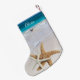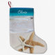 Estocagem tropical de Natal, impressa em ambos os lados com uma cena de praia e estrelas-do-mar grandes. Escolha pendurar para a direita ou para a esquerda e use o nome modelo de acordo. Exclua a amostra de nome não necessária ou coloque o mesmo nome em ambos os lados. Água do mar turquesa e cobrir de areia da praia em ambos os lados.