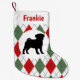 Pendure esta meia personalizada bonito do Natal com seu teste padrão vermelho e verde do argyle no envoltório para que o papai noel encha-se com os presentes para seu Pug!