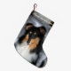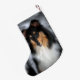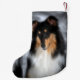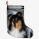 A meia áspera do Natal do retrato do collie do casaco da tri cor pode ser personalizada com seu nome doce dos filhotes de cachorro.