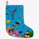 Meia De Natal Pequena Tropical fish & dolphin blue Christmas stocking