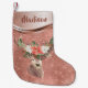 Meia De Natal Pequena Veado Brilho em Rose Gold Personalizado