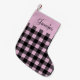 Meia De Natal Pequena Xadrez de búfalo rosa-rosa personalizada