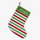 Meia festiva do feriado do Natal em listras vermelhas & verdes com parte superior verde - adicione seu nome para personalizar.