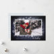 Elegante cartão com fotos de feriado apresenta sua imagem horizontal ou orientada a paisagem favorita emoldurada por flocos de neve brancos em um rico fundo azul da meia-noite que evoca uma noite de inverno nevada. Personalize este belo Cartões de foto de Natal com sua saudação personalizada e nomes ao longo da base em uma mistura chic de serifas clássicas e tipos modernos de caligrafia.