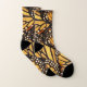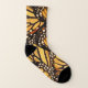 Estas meias caracterizam um design de borboletas de monarca bonitas (plexippus do Danaus) nas cores de alaranjado, de amarelo, o ouro, o preto, o marrom e o branco. As marcações fabulosas assemelham-se a um teste padrão abstrato artístico. Que ideia maravilhosa para um entusiasta do entomologista ou da borboleta!