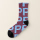 Estas meias apresentam uma coleção da letra "P" com uma fonte de impressão em negrito e tema de cores divididas duais cada meia é azul claro de um lado e vinho do outro. O lado azul claro tem letras azuis claras contorno vinho o lado vinho tem letras azuis claras contorno vinho com um design de teia branca dentro das letras neste estilo de impressão total mix match, todas as meias são feitas usando tamanho unissex.