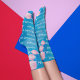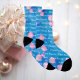 Estas meias azuis têm bolhas cor-de-rosa que criam aquele aspecto porreiro e divertido. Faça destas meias suas. Personalizou-o usando seu próprio nome e clique no botão personalizar e altere a cor para o que você deseja. Tem colegas de quarto ou filhos? Eles nunca mais roubarão suas meias. Perfeito para qualquer ocasião que você precise de um pequeno presente: Dia de os pais, Dia de as mães, Natal, Aniversários e Graduações.